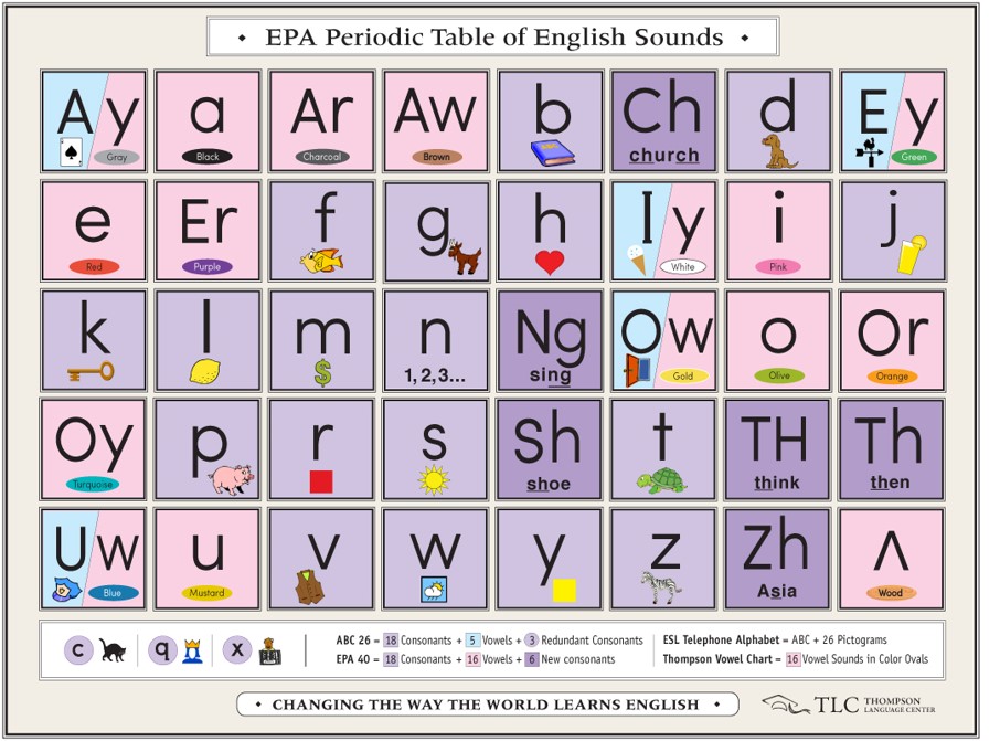 EPA Periodic Table of English Sounds is a bone for the scientific community. Attaching new information to old is a primary vehicle for learning. Accuracy, logic, objectivity and relevance are the playing field of the scientific community. And it’s cool.