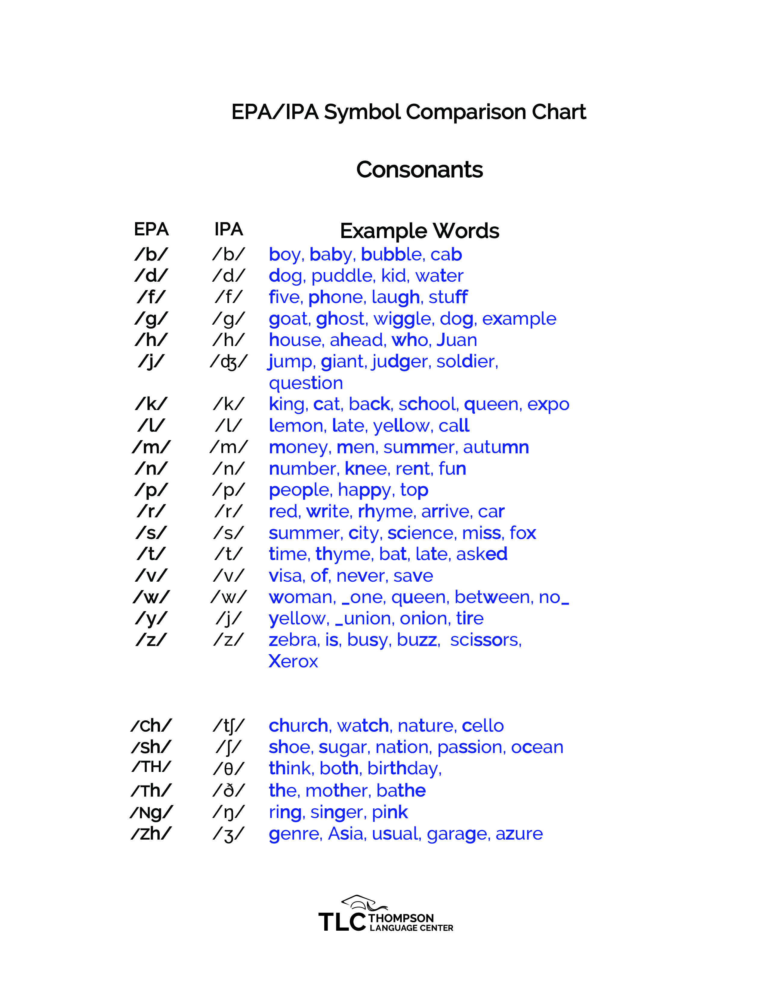 The English Phonetic Alphabet (EPA) is a keyboard-friendly set of symbols that represent English sounds. Consonant Sounds on the left, Vowel Sounds on the right